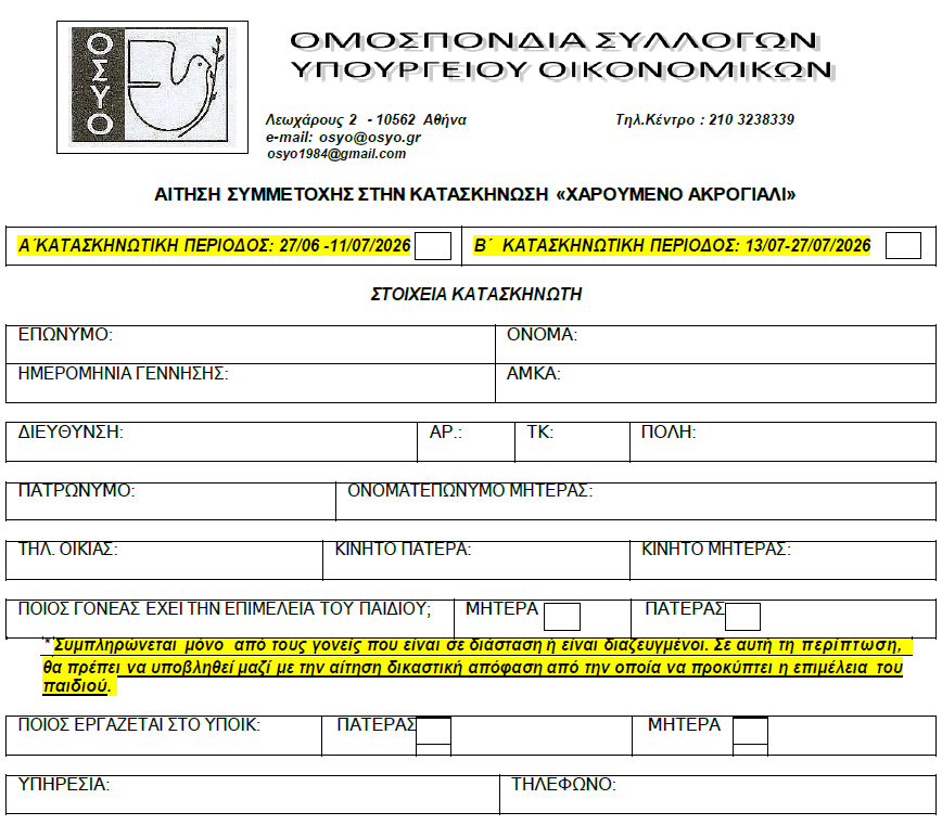 AAngelos Alfa28/04/202628/04/2026 ΑΙΤΗΣΗ – ΔΗΛΩΣΗ ΣΥΜΜΕΤΟΧΗΣ ΤΟΥ ΠΑΙΔΙΟΥ ΜΟΥ ΣΤΗΝ ΚΑΤΑΣΚΗΝΩΣΗ ΤΗΣ Ο.Σ.Υ.Ο. 2026 Πατήστε εδώ για να ανοίξετε και να πραγματοποιήσετε λήψη της αίτησης. Ανακοινώσεις για τις κατασκηνώσεις, Ανακοινώσεις Ο.Σ.Υ.Ο.